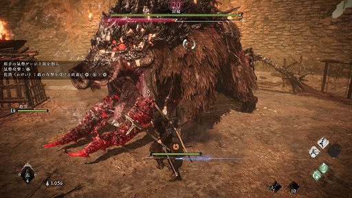 第二節では,大猿や大猪がボスとして立ちはだかるが,殺意はかなりのものだ。豊富な攻撃モーション,初動から遅れて飛んでくる攻撃判定,同じ動きで回数を変えてくる反撃しづらい攻撃など,序盤にもかかわらず「死にゲー慣れてますよね」ぐらいの勢いで殺しに来る。化勁の関係で,とにかく敵のモーションと回避タイミングを覚えて積極的に飛び込む必要があり,手に汗握る,油断できない展開が続くこともあって,仁王とはまた違ったヒリヒリした戦いが楽しめる印象だ。