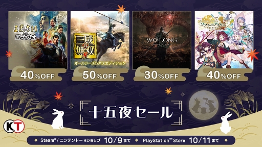 当社は、ニンテンドーeショップ、Steam、PlayStation Store で配信中の人気タイトルを通常価格の最大75%OFFでご提供する「十五夜セール」を下記の日程で開催しております。
