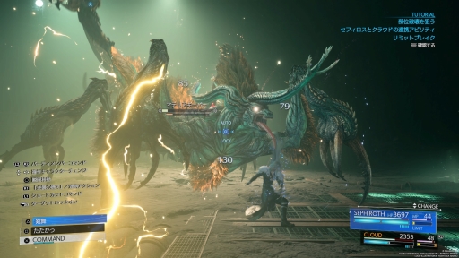 このゲーム冒頭の目玉の一つが,プレイヤーがセフィロスを操作できること。ただイベントシーンなどで過去のエピソードが語られるのではなく,実際に操作して英雄セフィロスの圧倒的な強さを感じられるというのは,物語を追う意味でもとても大きい。