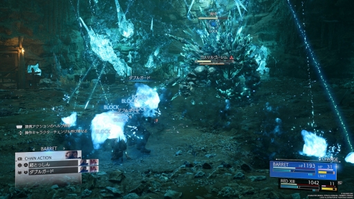 新たな仲間の一人(?)であるレッドXIIIは,ティファのように近接攻撃がメインだが,敵の攻撃をガードすることによってゲージを溜め,敵の体力を吸収できるリベンジモードを発動できる。前述のようにガードを利用する機会は多いので,活用できる機会は少なくない印象だ。