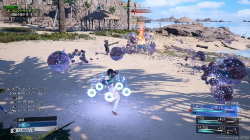 例えばクラウドの「ハウルスマッシュ」ならレッドXIIIと共闘することによって,その場から動かず簡単に遠距離攻撃ができるし,エアリスの「チェンジガード」なら仲間に敵のターゲットを移しつつ自分はそのまま攻撃できる。