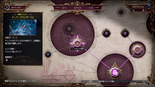 前作では,装備する武器ごとにスキルポイントを割り振るという独特の仕組みになっていたが,本作ではよりシンプルにキャラ自体を強化するものに変更されている。なお,ウェポンレベルや武器強化という仕組み自体は残っており,前者はスキルブックのアンロック要素,後者はマテリアのように武器自体に自由に取り付けできる強化バフになっている。“よりシンプル”と説明しておいてなんだが,このあたりは少々覚えるのに時間がいるかもしれない。