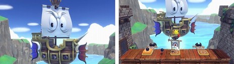 砲撃しながら追いかけてくる大帆船ウィンバッグから逃げる前半戦と、ウィンバッグと対決する後半戦の2部構成。タイミングよく砲弾を跳ね返して攻撃だ!