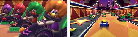 ビックリハウスの最後に待ち受けるのはボスピエロたちとのレース対決。ピエロレーサーズをぶっちぎって1着でゴールしよう!