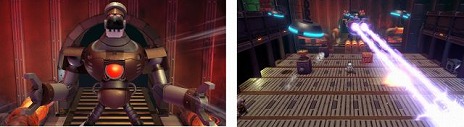 ゴーストたちの科学力を結集したロボットと対決だ! メタルパックマンになれば、熱い管の上を近づいて攻撃できるぞ!