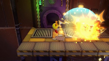 新しく追加された「かんたんモード」では、ステージの落下ポイントに「かんたんブロック」が配置されたり、ふんばりジャンプが長く使用できたりするので、初めてプレイする方も、アクションに自身がない方も安心して遊ぶことができます。