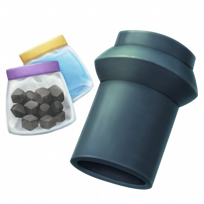 頭にエントツを乗せて石炭を食べ、水を飲むと、力がわいて、ものすごい速さで走ることができるひみつ道具。人やモノにぶつからないように注意!