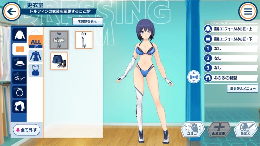 PC)で採用された着せ替え要素が,グレードアップして実装されている。トップスとボトムスを別々に着せ替えられるようになり,本作では上は水着で下はマリンスーツ,上半身だけユニフォームを着せて下はインナーのみ……といった,自由度というかさまざまなプレイヤーのフェチズム(?)に応えるカスタマイズを可能としている。