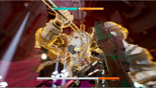 突進攻撃や炎のリングで攻撃してくる敵や,跳ね回りながら爆撃と雷の攻撃をしてくる敵など,ボスのバリエーションはさまざま。攻撃を見極めて回避したり,敵のシールドを削り切ってダウン攻撃したりして,ボスを追い詰めていく必要がある。