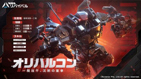 近接・範囲アタッカーで、強い生存能力を誇るSレアリティの新バトルスーツ「オリハルコン」が登場。前に向かってダッシュするスキルで敵との距離を縮め、重厚な装備を盾に前線で戦います。オリハルコンの戦闘シーンは以下プロモーションビデオでご覧いただけます。