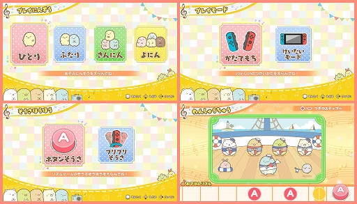 本作は,すみっコぐらしの世界観を舞台に,流れる音楽のリズムに合わせて,ボタンを押したり,Joy-Conを振ったりして,最大4人で楽しめるリズムゲーム。テニスコートや温泉,船上,音楽フェス会場などバラエティ豊かなステージが用意され,すみっコたちがさまざまなコスプレ姿で登場する。