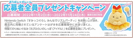 また,本作の発売を記念して,ゲームに登場するアイドルコスチュームの「えびふらいのしっぽ」の“てのりぬいぐるみ”を,応募者全員がもらえるプレゼントキャンペーンも実施される予定だ。詳細は,以下のリリース文で確認してほしい。