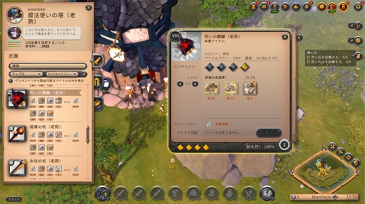 採集,クラフト,取引はいずれも,アルビオンのゲーム世界における経済に不可欠な要素だ。集めた素材を加工して,ゲーム内に存在するほぼすべての装備品やアイテムを作成でき,これらを市場に出品してほかのプレイヤーに販売したり,トレードしたりできるのだ。プレイヤー間の需給を見極め,必要とされている素材やアイテムをうまく用意できれば,ゲーム内で一財産を築くことができるかも?