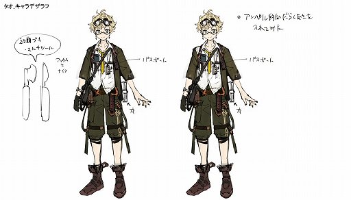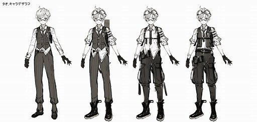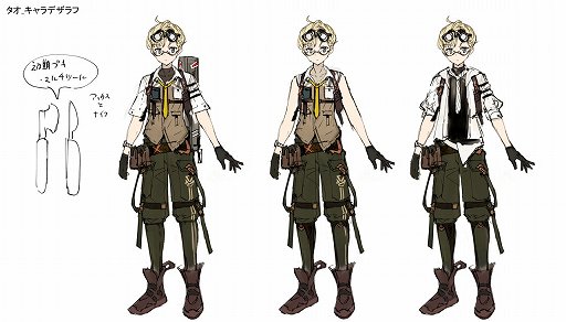 両方につけると「ライザ1」と同じだから片方にして,ザムエルと同じような着せ方をさせたら,肌の露出具合も夏っぽくてちょうどいい。父親とのつながりも描けるし,「これだ!」と答えが出ました。