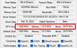 後述するテスト環境において,「GPU-Z」(Version 2.52.0)でコアクロックの変動を追ってみたところ,2820MHzまで上昇しているのを確認した。Founders Editionではないものの,RTX 4070 Tiは同様のテストで2760MHzまでしか上がらなかったので,RTX 4070は回路規模を抑えた分だけ,動作クロックが上がりやすくなっているのだろう。