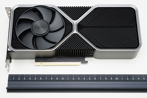 カードサイズは,実測で約243mm(※突起部除く)で,比較対象に用いたRTX 4070 Ti搭載モデルのPalit Microsystems製「GeForce RTX 4070 Ti GamingPro OC」が約328mmであったのに比べると,80mm近くも短い。RTX 3070 Founders Editonが約241mmだったので,それとほぼ同じサイズだ。