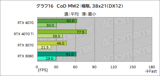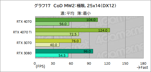 「Call of Duty: Modern Warfare II」(※グラフ内ではCoD MW2)の結果がグラフ16〜18だ。