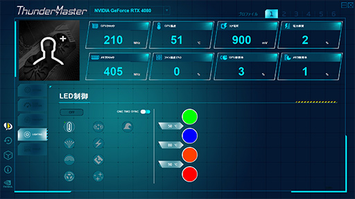 カード側面にはLEDが搭載されており,ThunderMasterから制御が可能だ。