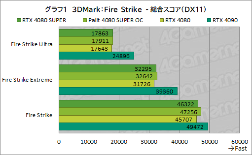 それでは3DMarkの結果から順に見ていこう。グラフ1は「Fire Strike」の総合スコアをまとめたものだ。