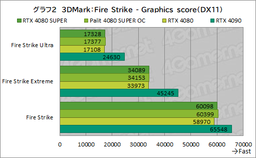 続くグラフ2は,Fire Strikeの総合スコアから「Graphics score」を抜き出したものとなる。