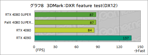 もうひとつのレイトレーシング性能を測るDirectX Raytracing feature testの結果がグラフ8だ。