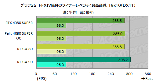 そんなFFXIV暁月のフィナーレ ベンチにおける平均フレームレートと最小フレームレートをまとめたものが,グラフ23〜25だ。