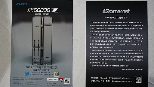 1980年代末〜1990年代初頭に,ホビーPCの代表的な一機種として名を馳せたシャープの「X68000」シリーズ。その名を冠した「X68000 Z」が,瑞起から2022年内に発売される。TGS 2022の4Gamerブースでは,モックの展示と投稿企画を実施する予定だ。
