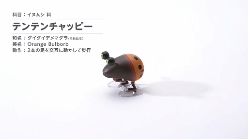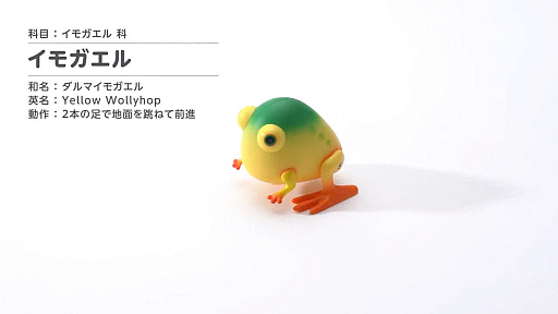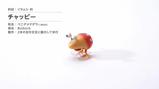 動画は,ピクミンシリーズに登場する原生生物のチャッピー,テンテンチャッピー,イモガエルのおもちゃを紹介するものだ。ゼンマイを巻くと動き出し,チャッピーとテンテンチャッピーは二足歩行で,イモガエルはキモかわいい動きでぴょんぴょん跳ねて移動する様子が収録されている。