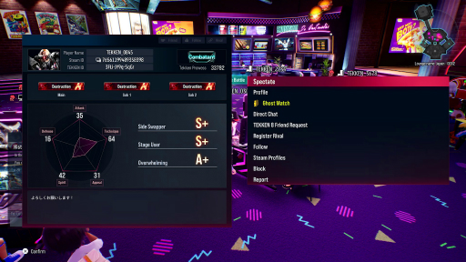 よかった部分はもちろん,ここは使いにくかった,こういう機能があるといいみたいなフィードバックや,ゴーストをオンラインのラウンジで見られるということがどういうコミュニケーションを生むかといった反応も見たいので,ぜひTEKKEN FIGHT LOUNGEに足を踏み入れて,SUPER GHOST BATTLEにも触れてほしいです。