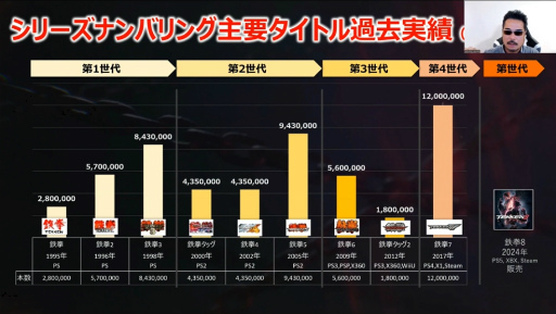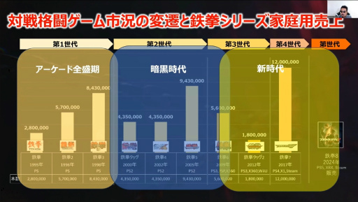 かなり破天荒な施策の数々だが,こういった努力の甲斐があってか,鉄拳は暗黒時代を乗り切り,「世界で最も売れている3D対戦格闘ゲーム」として今に続いている。