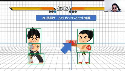 2D格闘ゲームの場合,カメラに対してのXとYで示される座標によって,「当たっている」「当たっていない」が判定される。言葉を変えると「平面での処理」になり,原田氏によると「非常に正確」なものであるという。