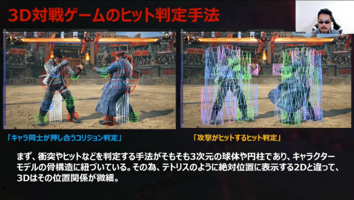 鉄拳シリーズは,こういった繊細な処理と向き合い続けており,コリジョンやヒット判定の手法も常に改善し続けていると原田氏は語った。