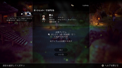 「てなずける」には、「ほしにく」等の特定アイテムを消費する必要がある。
