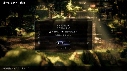オーシュット独自のアクション。魔物を捕まえたり、捕まえた魔物をアイテムに加工することができる。