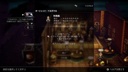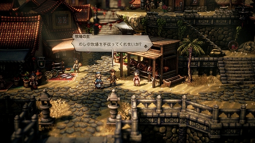 8人の主人公のメインストーリーの他に様々なサブストーリーがある。問題を解決するための方法が一つではないこともあるので、自由にフィールドコマンドを活用して、悩んでいる町の人を助けよう。![]() |