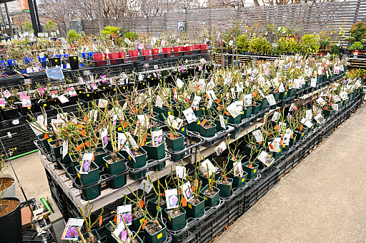 とはいえ,花が咲いていそうな時期に買いに来ても,バラと同じくムダ撃ちになりかねないそうですから。先見の明が求められますわ。