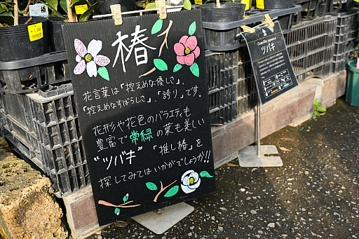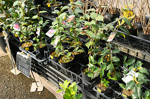 バラと隣り合ったツバキ売り場は,面積的には猫の額でしたわ。ジュンク堂のひと棚とどっこいどっこいといったところですの。