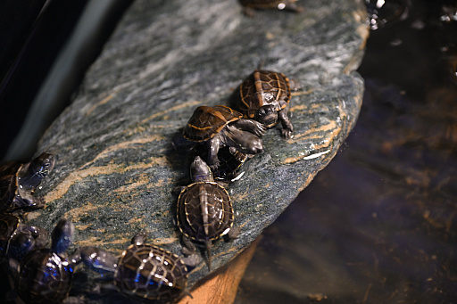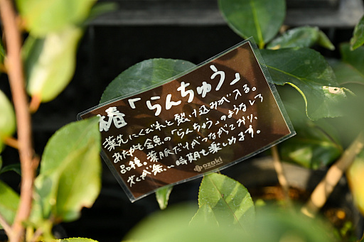 それと,ツバキに関してはちょうど珍しい品種が入荷したとのことで見せてもらえましたわ。それが「らんちゅう」。ぽけつとの怪物のようなお名前ですけれど,これは同名の金魚がモチーフだそうで。