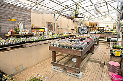 植物以外にもじゃがいもなどの野菜が直売されていて,園芸店らしくお土やお飾りやお道具も豊富に取りそろえられていて,このときは残念ながら開いておりませんでしたが,カフェまでありましたの。