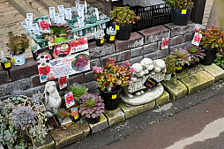 別の日。浅草かっぱ橋道具街の近くにあった神社の入り口に,かわいらしいツバキが咲いているのに気付きました。意識して見ると,バラやツバキとは言わずとも,都会にはお花があふれておりました。