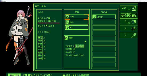 ![]() クエスターは,クラス専用のスキルを持っている。こちらは装備に関係なく使用できる |