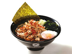 富士そばの定番人気メニュー「肉富士そば」のお肉に辛味スパイスの味噌ラージャンと一味唐辛子を混ぜ合わせた旨辛メニューです。