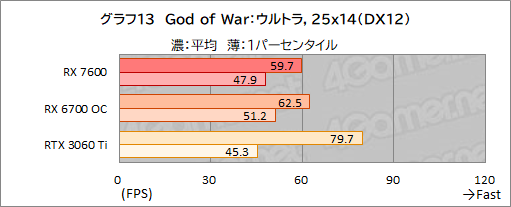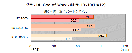 それに対してRX 7600の性能が今ひとつ伸び悩んだのが,グラフ12〜14の「God of War」だ。