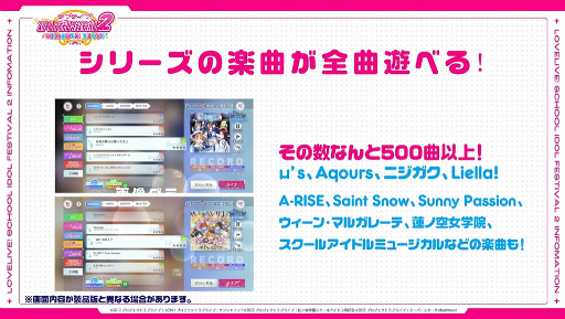 本題の新作スクフェス2に関しては,2022年9月開催のリアルイベント「スクフェスシリーズ感謝祭 2022」の最終日にタイトルが発表され,会場では“ラブライブ!シリーズの楽曲すべてがプレイできる(リミックス,ソロバージョンを除く)”ことが明かされていた。