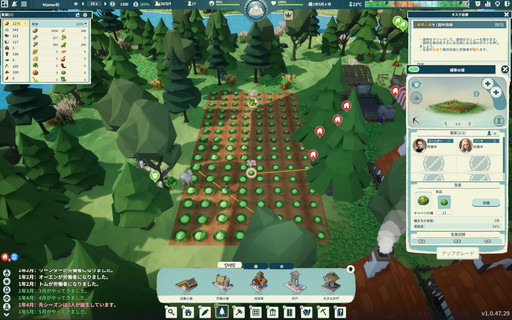 作りたい施設を手早く建設し,採集物をスムーズに集められる操作の快適さも魅力のひとつだ。たとえば,PC版では畑を作りたい位置でクリックして,そのまま任意の範囲をドラッグすれば一瞬で広範囲に畑を作れる。周囲に木などの障害物があっても自動的に伐採してくれるので,細かな作業をする必要がなくサクサク進められるのがとても快適だ。