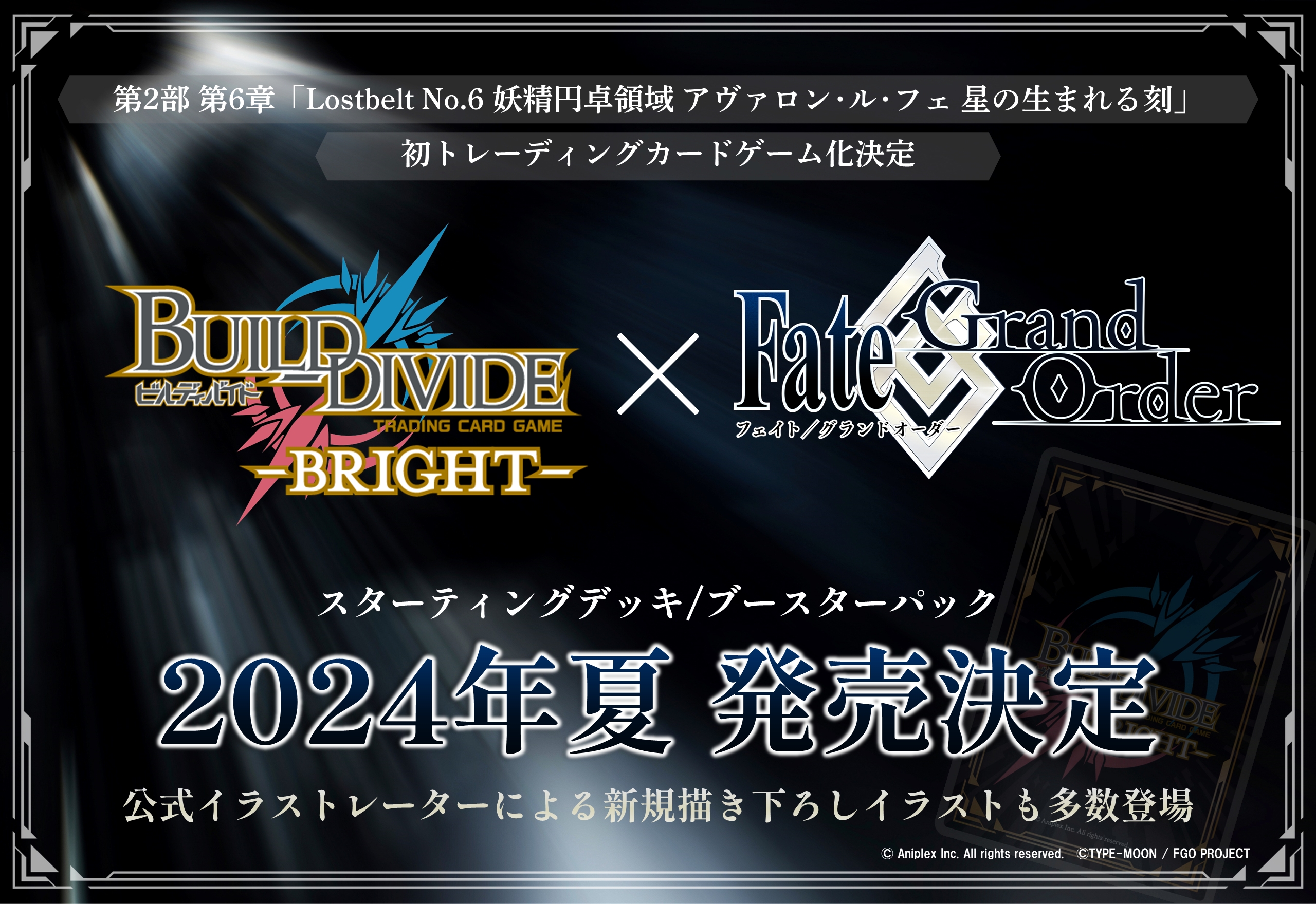 TCG「ビルディバイド -ブライト-」に「FGO」が2024年夏参戦。第2部第6章「アヴァロン・ル・フェ」の新規描き下ろしイラストを多数収録