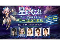 HYBE IMは,「星になれ ヴェーダの騎士たち」の生放送を,本日(2024年4月12日)20:00よりゲーム公式YouTubeチャンネルで実施する。今回の放送は,本作のサービス開始を記念して行われるものだ。番組では,声優の市ノ瀬加那さんやお笑い芸人の板倉俊之さんらを招き,チーム対抗の3本勝負が実施されるという。