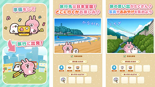 本作は,イラストレーターのカナヘイ氏が手がけたキャラクター「ピスケ&うさぎ」が活躍するタイトル。2匹を旅行に行かせて帰ってくるのを待つだけという,気軽に遊べる放置ゲームだ。