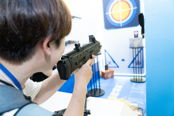 「荒野行動」(PC / Nintendo Switch / PS4 / iOS / Android)は,無人島を舞台に,最後の1人になるまで100人のプレイヤーが戦うバトルロイヤルゲーム。ブースにある“射撃場”では,ゲームプレイをリアル体験できるユーザー参加型コンテンツがあり,獲得したポイントによって賞品がもらえる。