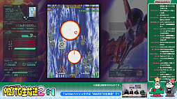 アレスタブランチ 」に関しては,同作ディレクターの山中将人氏が(デーモンめいた姿で)登壇し,動画とあわせてキャラクターとゲームシステムに関する大まかな解説を行った。それによると,本作は「アレスタ」シリーズの原点に立ち返った自機操作+2ボタン仕様で,ゲーム本編の難度はノーマルの他,エムツー開発作品ではおなじみの“スーパーイージー”に相当するものや,現時点では公表できないものがあるという。
